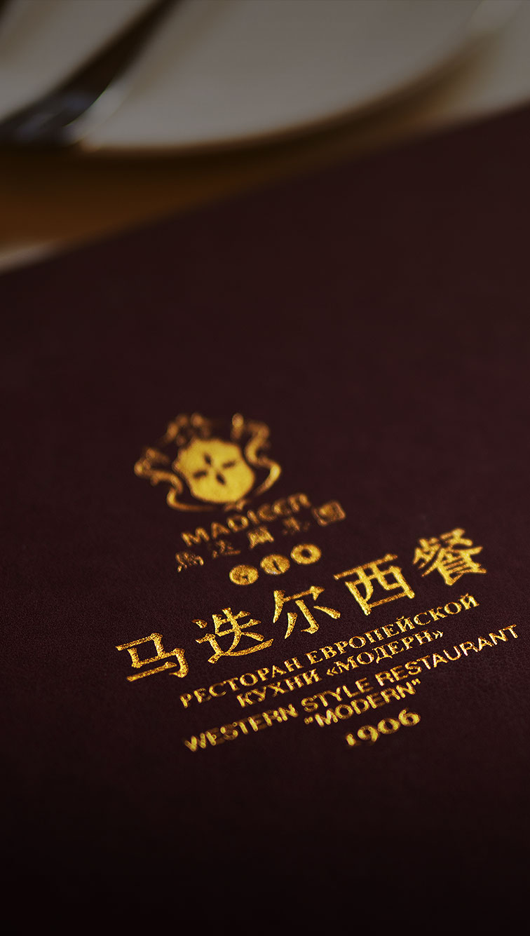 马迭尔中餐以龙菜为主,经典宴席冰雪宴、三江鱼宴,特色菜式有蒜烧鳇鱼、松茸豆花、红汁烩小牛肉等。
